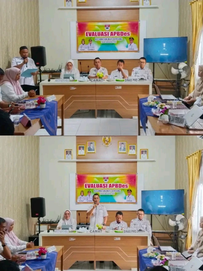 Kegiatan Evaluasi Rancangan Anggaran Pendapatan dan Belanja Desa (RAPBDes) Tahun Anggaran 2026, di Kantor Kecamatan Way Serdang Kabupaten Mesuji. Rabu (28/01/2026).